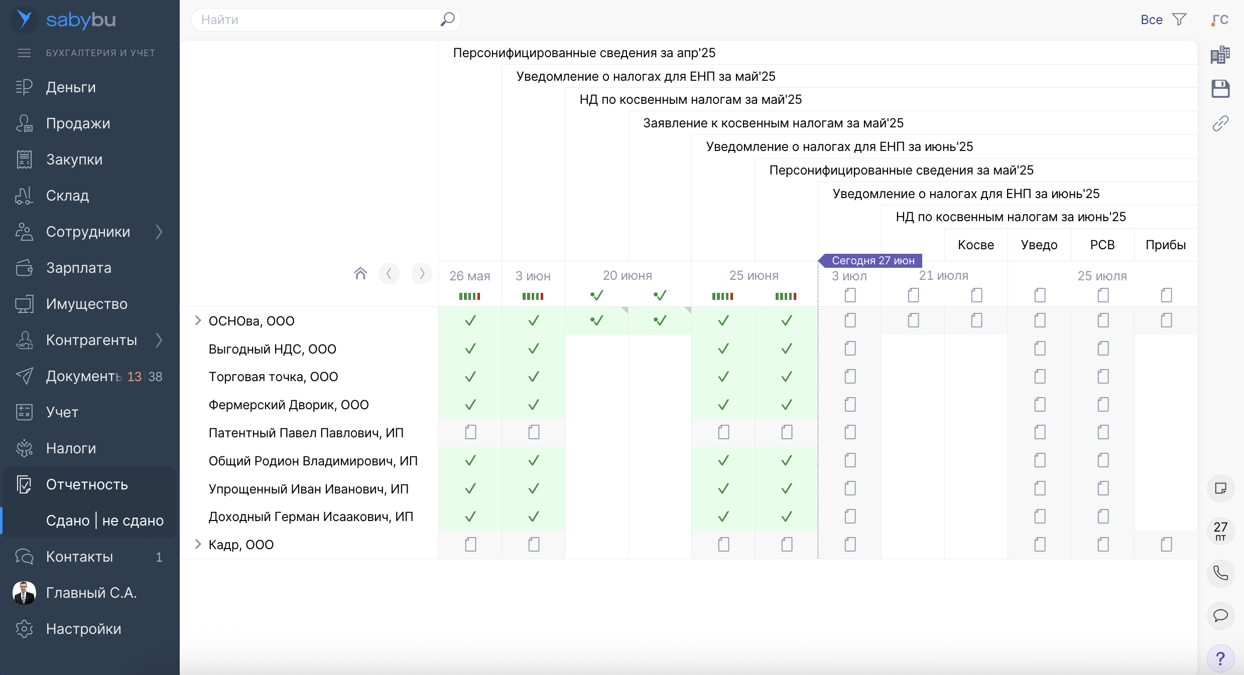 Приложение Saby Bu — это онлайн-сервис для ведения учета и отправки отчетности с уже встроенными ОФД и ЭДО. Платформа подходит бизнесу на любом налоговом режиме — от индивидуального предпринимателя до международной группы компаний. Основные возможности онлайн-сервиса: