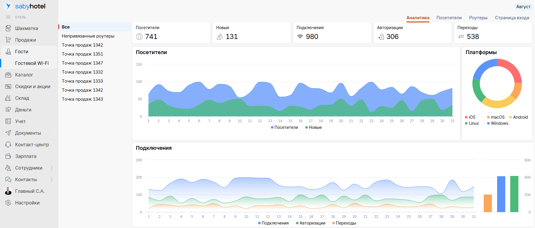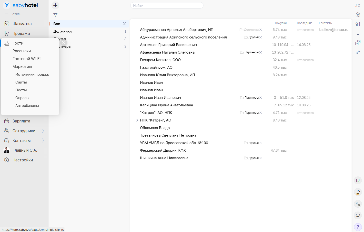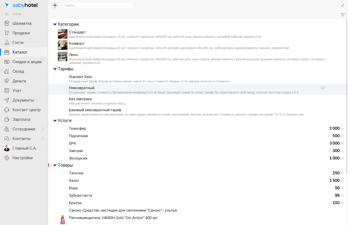от 10000 RUBSaby Hotel — это облачная программа для отеля, предназначенная для комплексного управления гостиничным бизнесом. Она автоматизирует бронирования, снижает объём рутинных операций и помогает увеличить загрузку номеров и продуктивность команды. Встроенная CRM, аналитика в реальном времени и интеграции с ведущими сервисами онлайн-бронирования делают Saby Hotel универсальным решением для гостиниц.