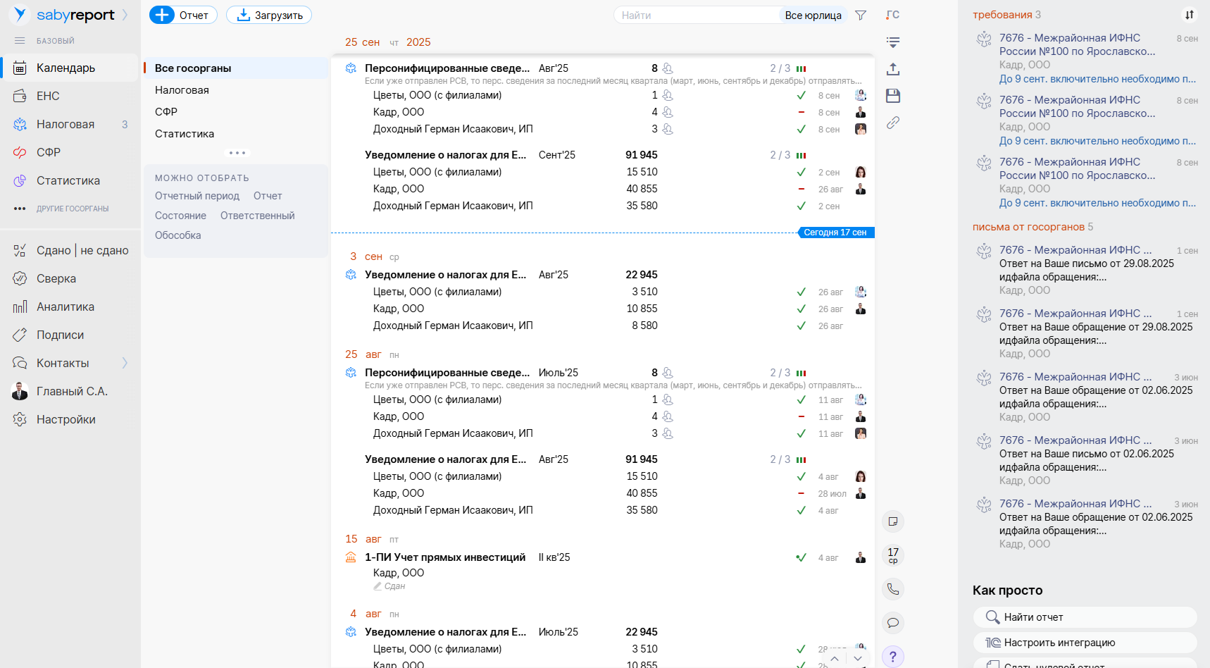 Saby Report разработан для компаний и специалистов, которым важно сдавать налоговую и бухгалтерскую отчётность через интернет быстро и корректно: